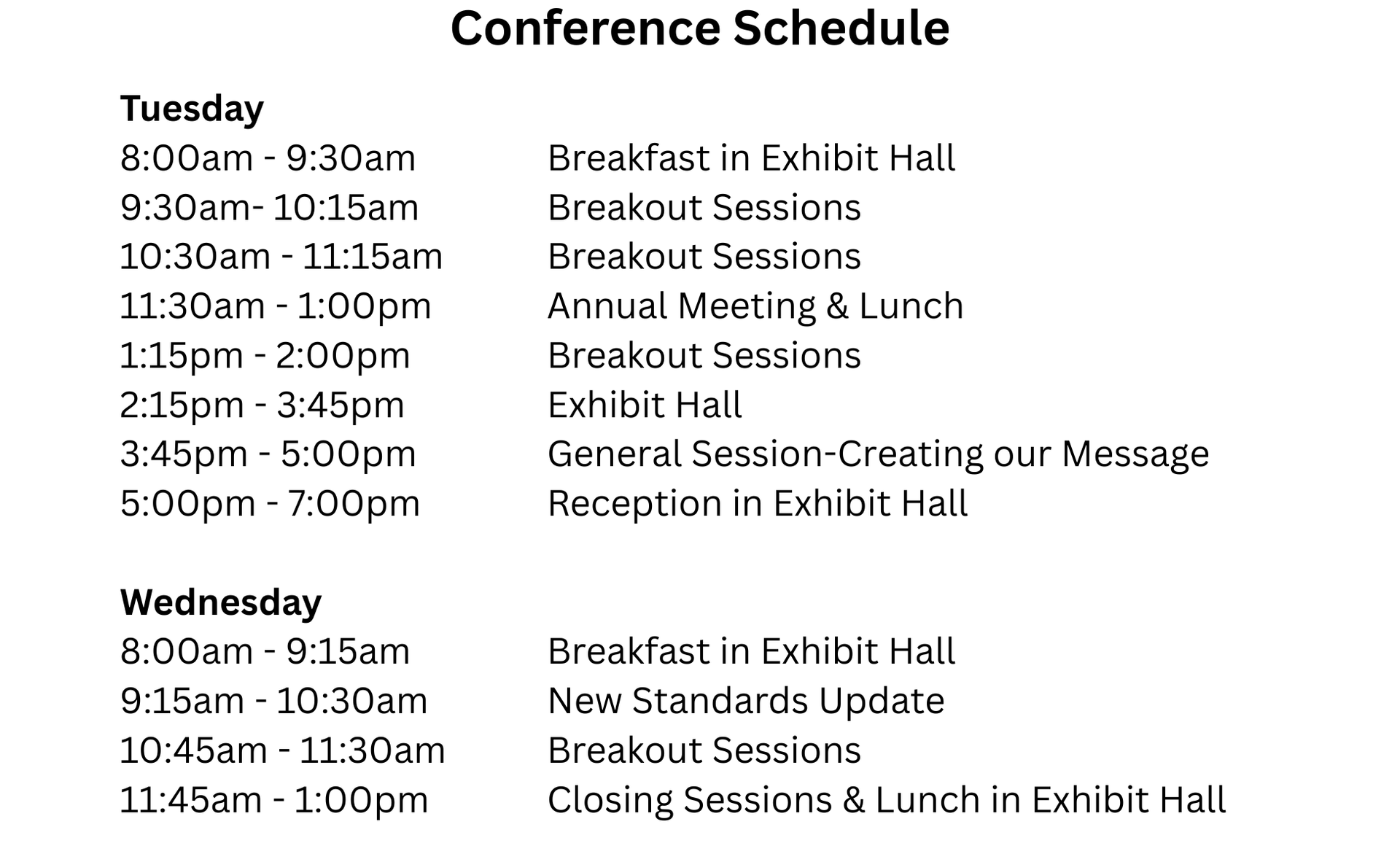- Support of key conference elements (breaks, lanyards, training, etc.)